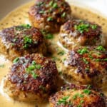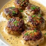 - Bake: Nestle the browned patties into the creamy gravy, cover tightly with a lid or foil, and bake at 350°F (175°C) for 45 minutes.