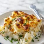 Cheesy Funeral Potatoes are a creamy, comforting casserole made with shredded hash browns, sour cream, cheddar cheese, and a crunchy buttery cornflake topping baked to golden perfection. This classic dish is perfect for gatherings or a hearty side at dinner.