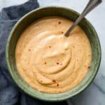 5. Taste and tweak: Give your sauce a little taste test. Add more salt if you like, or a bit more Sriracha if you want extra heat. The key is balancing spicy, creamy, and tangy.