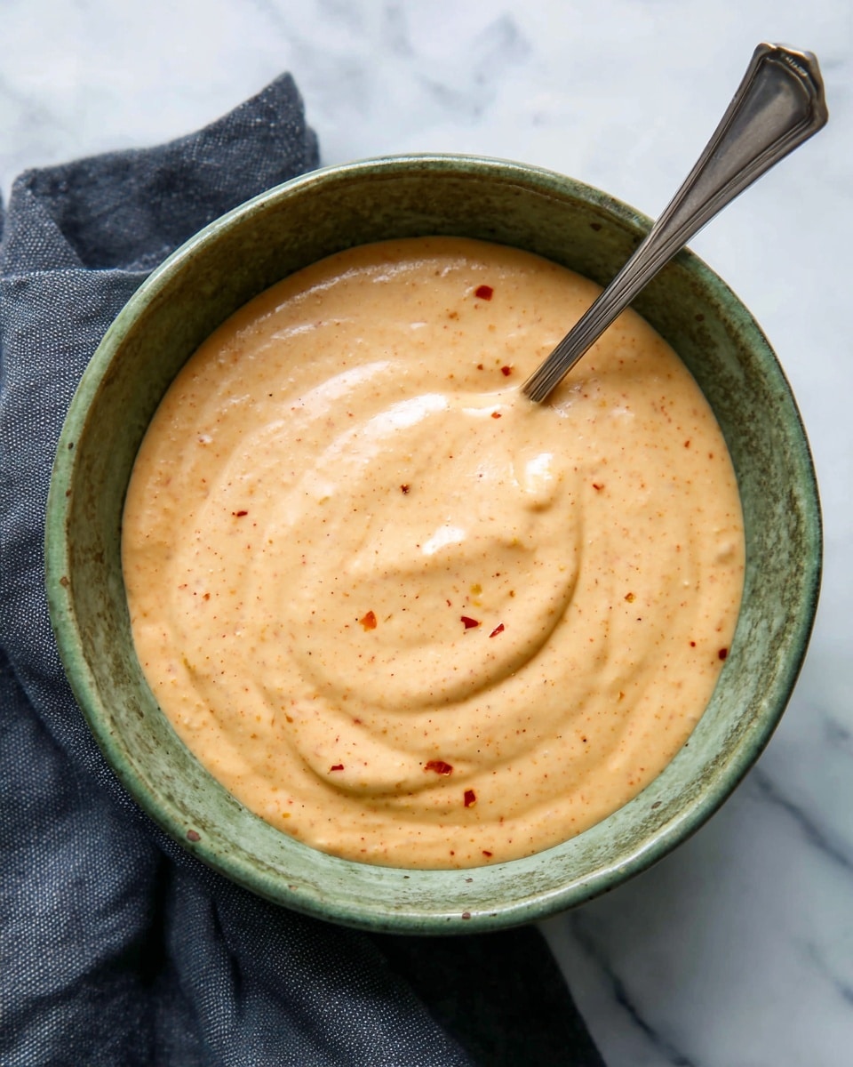 This sauce shines when finished with an extra squeeze of fresh lemon or a sprinkle of toasted sesame seeds on top. You can also stir in finely chopped fresh herbs like cilantro or chives for an herbal lift that pairs beautifully with the spicy creaminess.