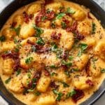 This recipe stands out because it’s deceptively simple, but bursting with layered flavors and textures. The sun-dried tomatoes lend a subtle tang and depth, while the Italian seasoning and red pepper flakes kick in just enough warmth without overpowering the dish. The sauce is luxuriously creamy but not heavy, with fresh basil adding that vibrant green pop and freshness. Plus, it’s a beautiful dish with its soft white beans swimming in a golden, velvety sauce—the perfect comfort food with a touch of elegance.