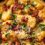 - Create the Creamy Sauce: Stir in the sun-dried tomatoes and cook for 2 minutes to release their flavors. Pour in the chicken or vegetable broth and bring to a simmer. Reduce heat and stir in the heavy cream.