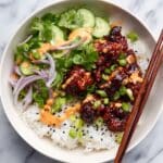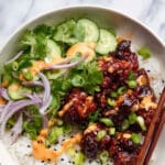 Add a drizzle of spicy mayo or extra sriracha if you like heat, or sprinkle toasted sesame seeds and finely sliced green onions on top for a crunchy fresh finish. A squeeze of lime over the bowl before serving will brighten the whole dish even more.